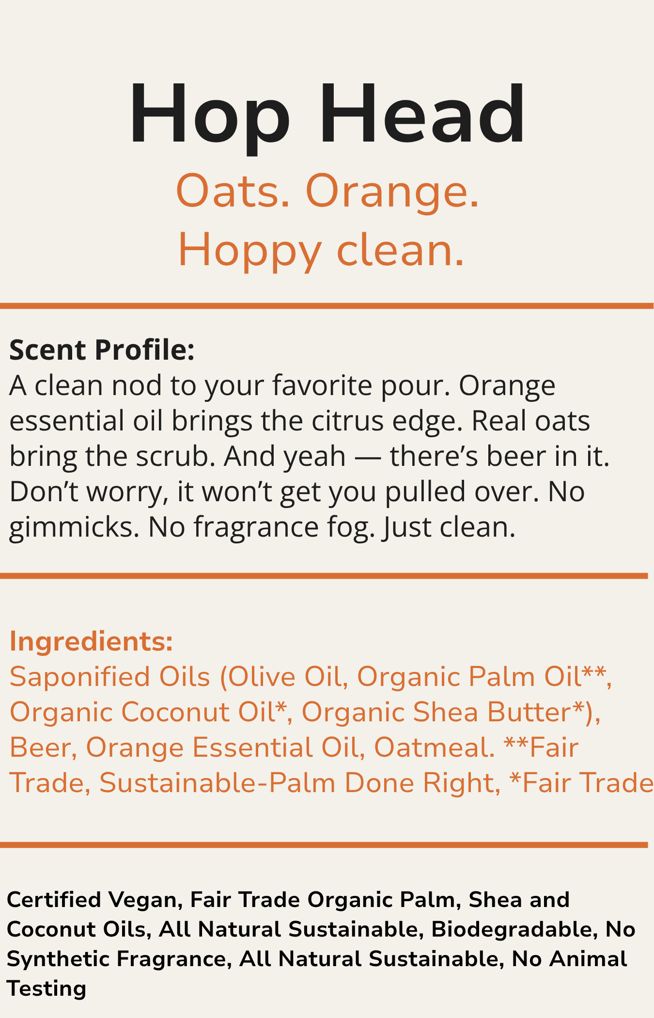 A clean nod to your favorite pour. Orange essential oil brings the citrus edge. Real oats bring the scrub. And yeah — there’s beer in it. Don’t worry, it won’t get you pulled over. No gimmicks. No fragrance fog. Just clean.